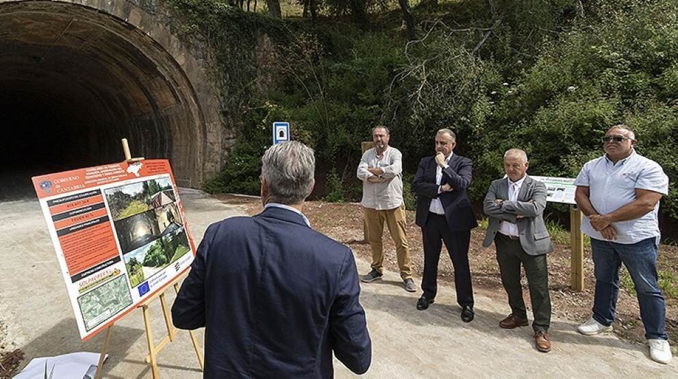 El recorrido atraviesa el túnel existente de 238 metros, que también se ha acondicionado para su uso, que conecta con la senda ciclable existente, denominada vía verde del Pas. Un túnel que, tal y como ha explicado Media, nos recuerda a los que están en la entrada del futuro teleférico de Vega de Pas, “que se adjudicarán en los próximos días”.