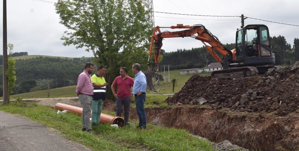 El alcalde Carlos Caramés (PP), acompañado por el concejal de Obras Públicas, César Blanco, y el alcalde pedáneo de la localidad, David Diego, ha visitado la zona para comprobar la marcha de los trabajos que el Consistorio está ejecutando.