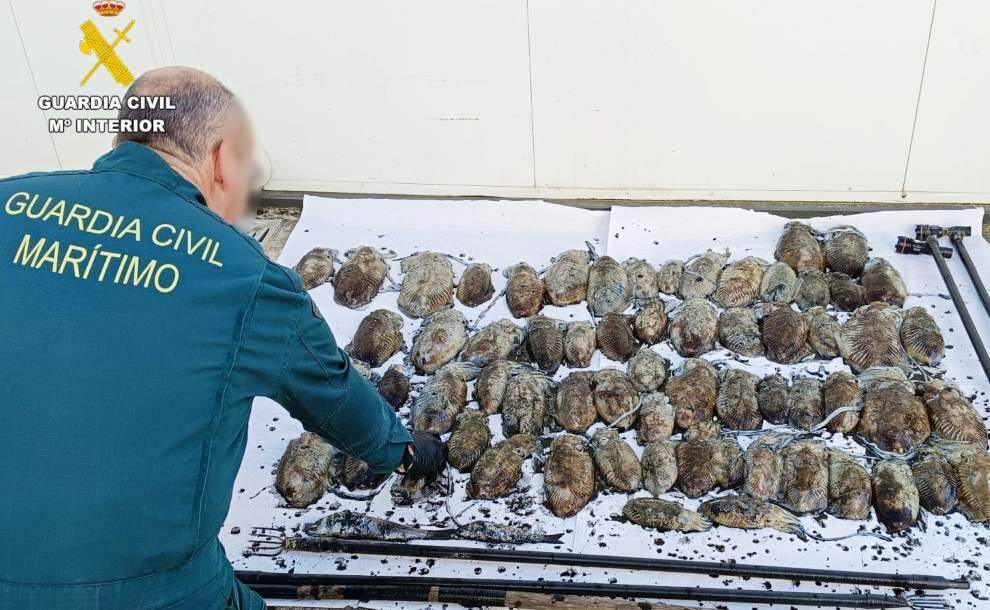 La Guardia Civil en Cantabria ha llevado a cabo dos actuaciones el pasado fin de semana contra el marisqueo ilegal en la Bahía de Santander, fruto de las cuales se ha denunciado a cuatro personas e intervenido más de 40 kilogramos de cachón (sepia officinalis) pescados de manera ilegal.