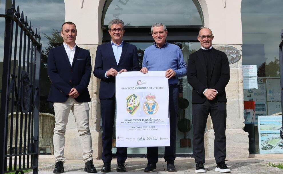 En la presentación, que acogió el Auntamiento de este municipio, participaron el director científico de Cohorte Cantabria; Javier Crespo; el directivo de la Sociedad Deportiva San Martín de la Arena y coordinador del evento, Juan Antonio Rodríguez, así como el jugador del equipo Real Madrid Leyendas, Pedro Munitis, y alcalde de Suances, Andrés Ruiz Moya (PSOE).