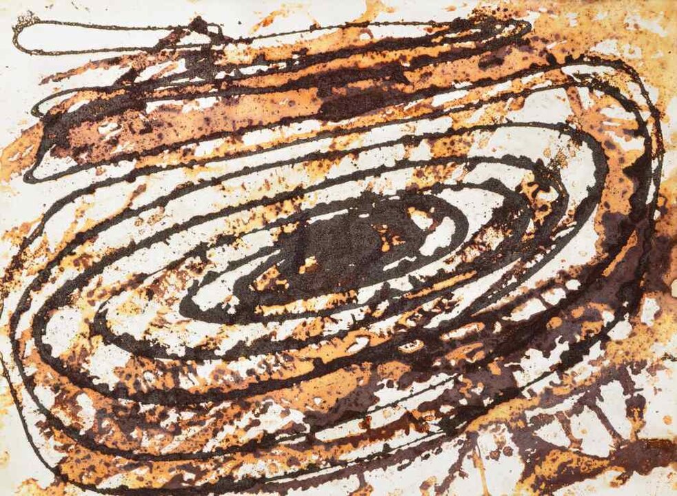 La exposición consta de cerca de 50 piezas pictóricas y escultóricas que permiten estar en una sincronía entre pasado y presente a través de una serie de piezas realizadas principalmente con hierro reciclado -una constante en su práctica artística- y distintos tipos de papel, sobre los que la acción del tiempo actúa como un material más. Estos elementos, tan aparentemente opuestos entre sí, se transforman en una “piel” de gran consistencia. En función de la luz, la distancia y punto de vista, se desvelan numerosos estratos, matices y texturas. Las formas a las que dan lugar de una manera azarosa, pero a la vez controlada, se asemejan a las formas más esenciales del arte prehistórico: el signo.