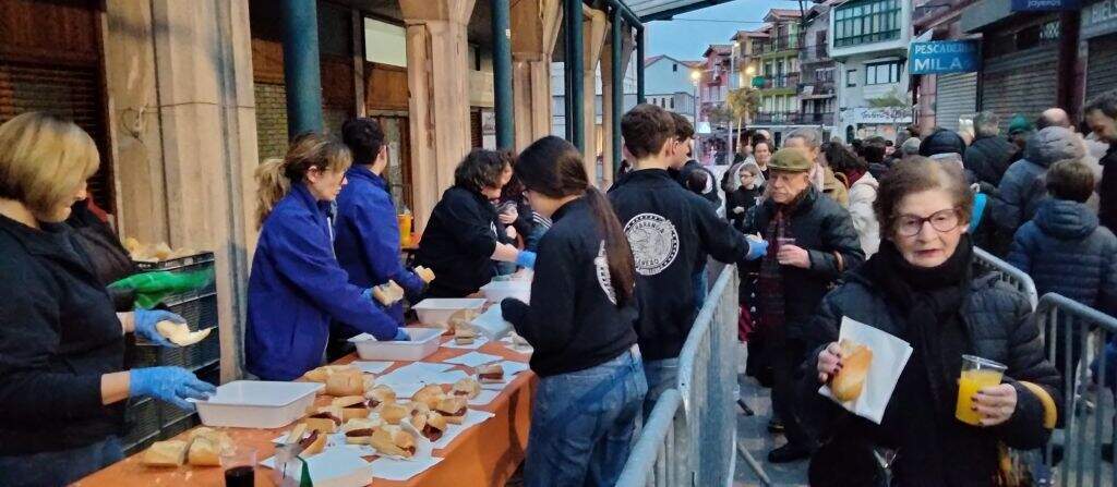 La charanga El Cancaneo repartió bocadillos de chorizo y salchichas en la Plaza del Mercado